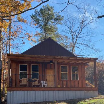 Brand New 2022- Two bedroom wood cabin built from wood straight off the land. Porch over looking fully stocked pond right next to lake Wedowee! Relax and unwind in your own hideaway. Enjoy s’mores or hotdogs by the fire pit. Bring your pole and fish right outside the cabin! Or go for a hike at Alabama's highest point, Cheaha State Park just 20 miles away. Hunting land available for extra fee with valid Hunting license and permit.